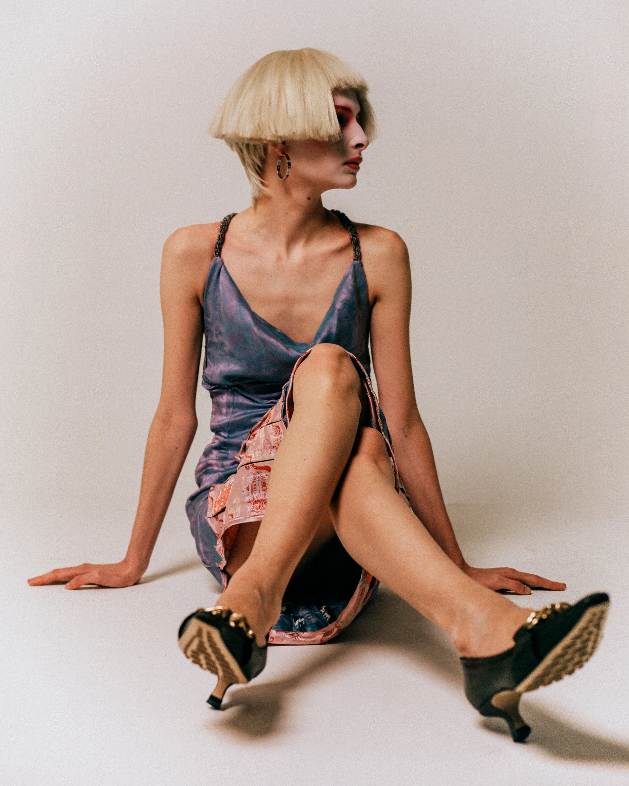 With this background, Designer VV SU created the project “Retro-Being,” which aims to open a discussion about what the future looks like to the new gen- eration and how it differs from previous generations’ perception of the future through the lens of fashion. SU believes that, in contrast to the “space race” aesthetic, this generation values the concept of “sorrow for things” while explor- ing all the technical advancements. Thus, by studying couture techniques from Cristobal Balenciaga and traditional Chinese garments, Su produced a future that the tradition and the tech/cyber merge with one another.