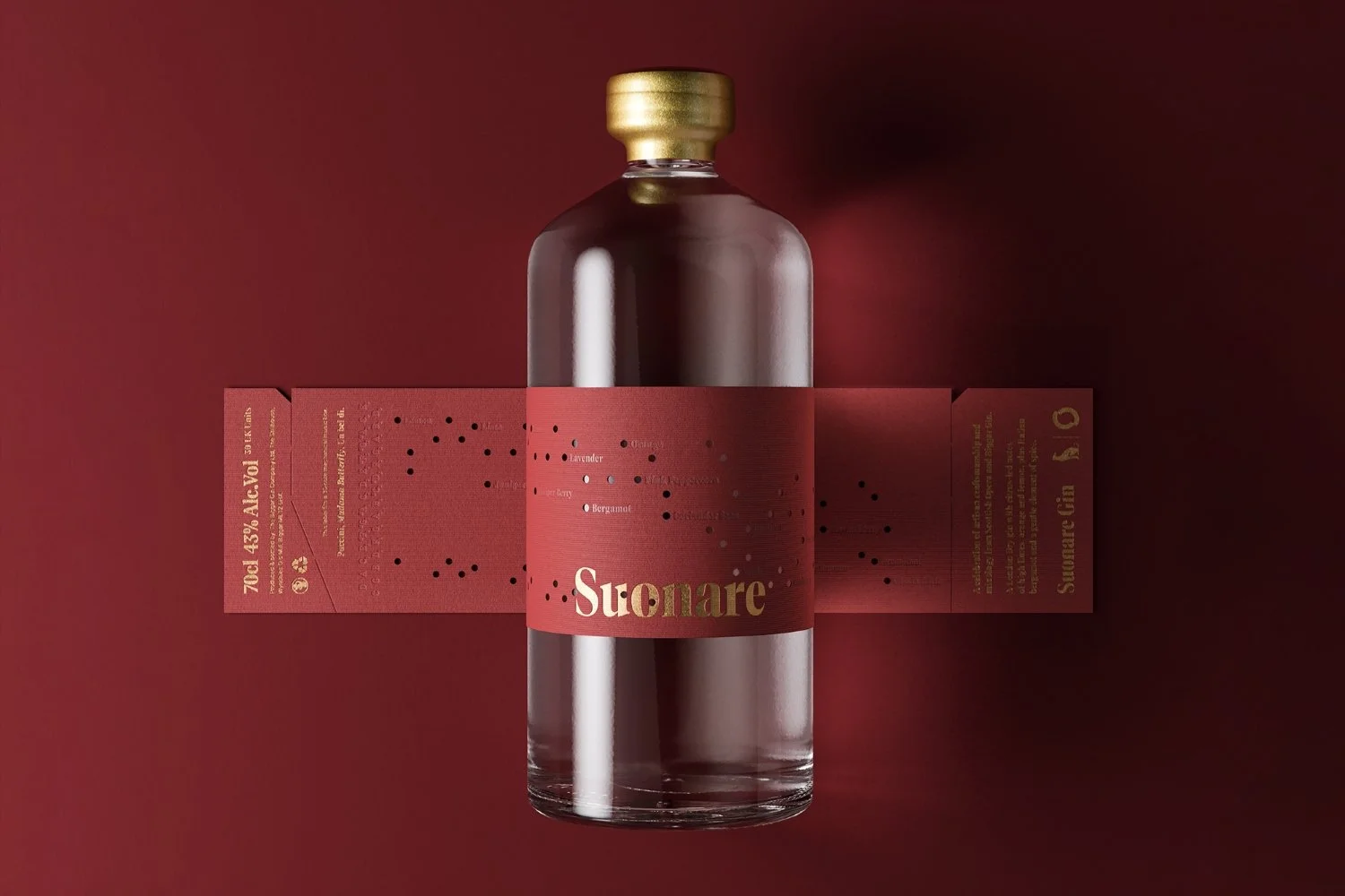 Glasgow-based studio Tangent has created the branding and packaging for Suonare gin to celebrate Scottish Opera’s 60th anniversary, working with local distiller Biggar Gin, with a project that blends “mixology and musicology”.