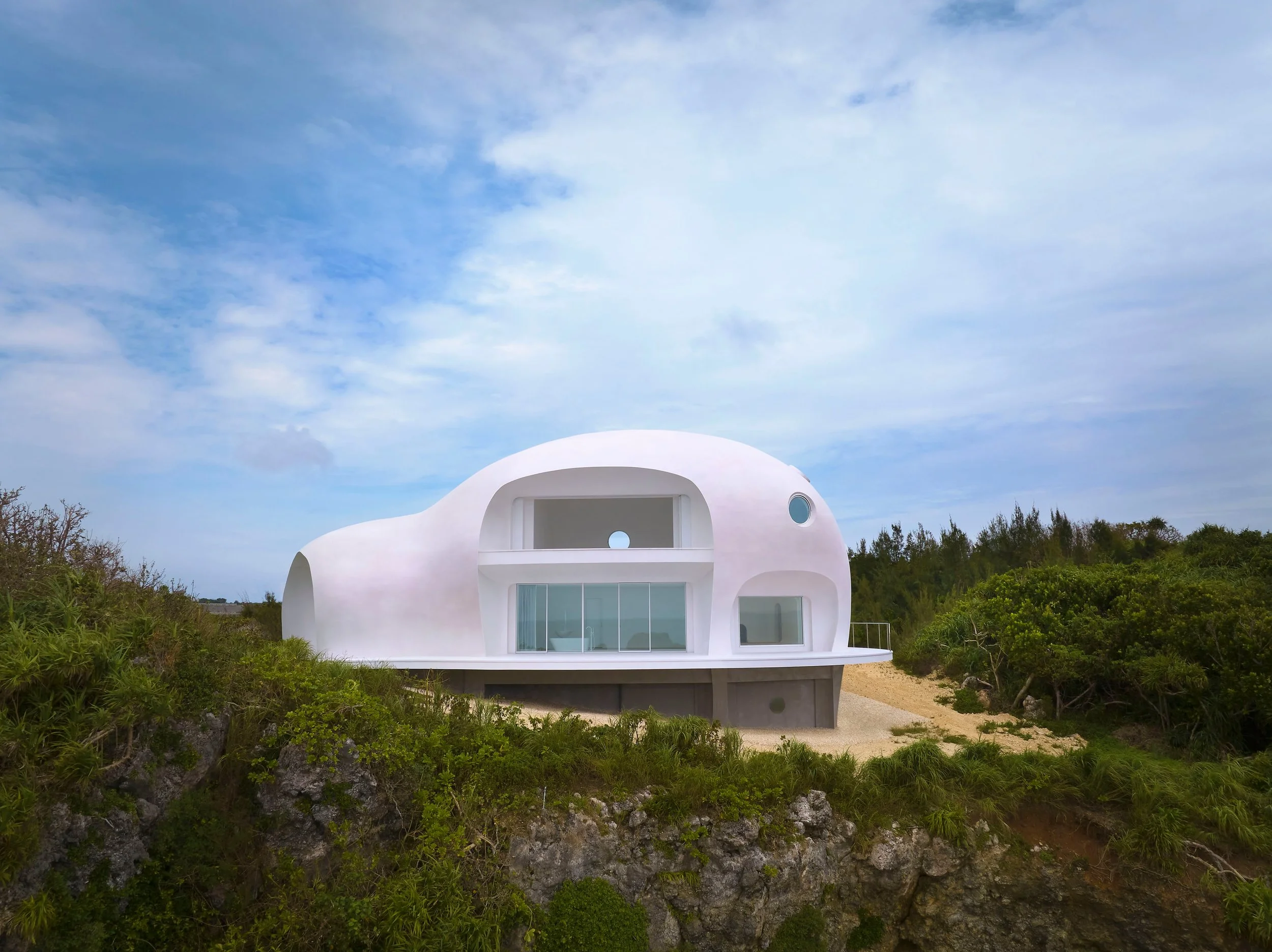 Two decades ago, the Japanese artist Mariko Mori began spending her summers at a friend’s house on the island of Okinawa in the middle of the East China Sea. She enjoyed her morning ritual of looking out at the ocean while she sketched. In love with the setting, Mori began to look for land on which to build a place of her own and in 2016 acquired a plot along the coast of Miyako Island, nearly 200 miles southwest of Okinawa. (A three-hour flight from Tokyo, it’s closest to Taiwan than it is to Japan.)